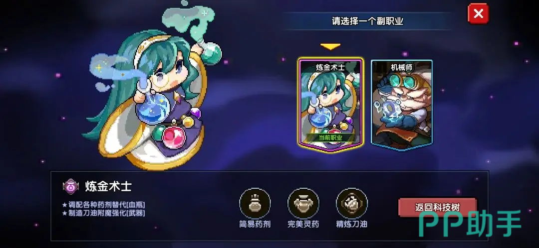 中期如果想要更换副职业也是完全可以的,因为第一次换职业完全免费,最后再给大家分享一下刷材料的地方,可以前往宝箱房,材料房和boss房进行刷取,刷取到这些材料后就可以制作炼金术士的药剂,以及机械师的火箭靴,从而让它们升级。