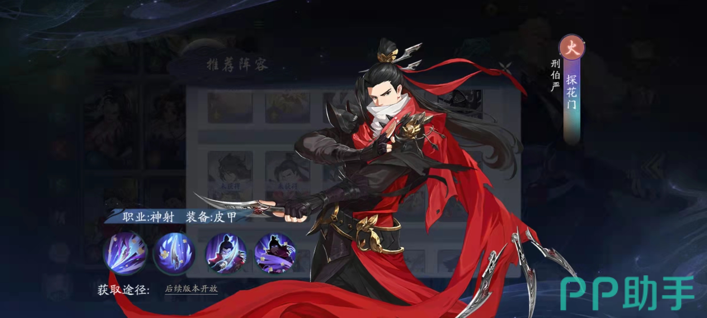 可以搭配火系神射职业探花门辅助增加伤害,探花门的绝技是很强的单体秒杀技能,普攻得到了强化效果,自身的生存能力也有保障。