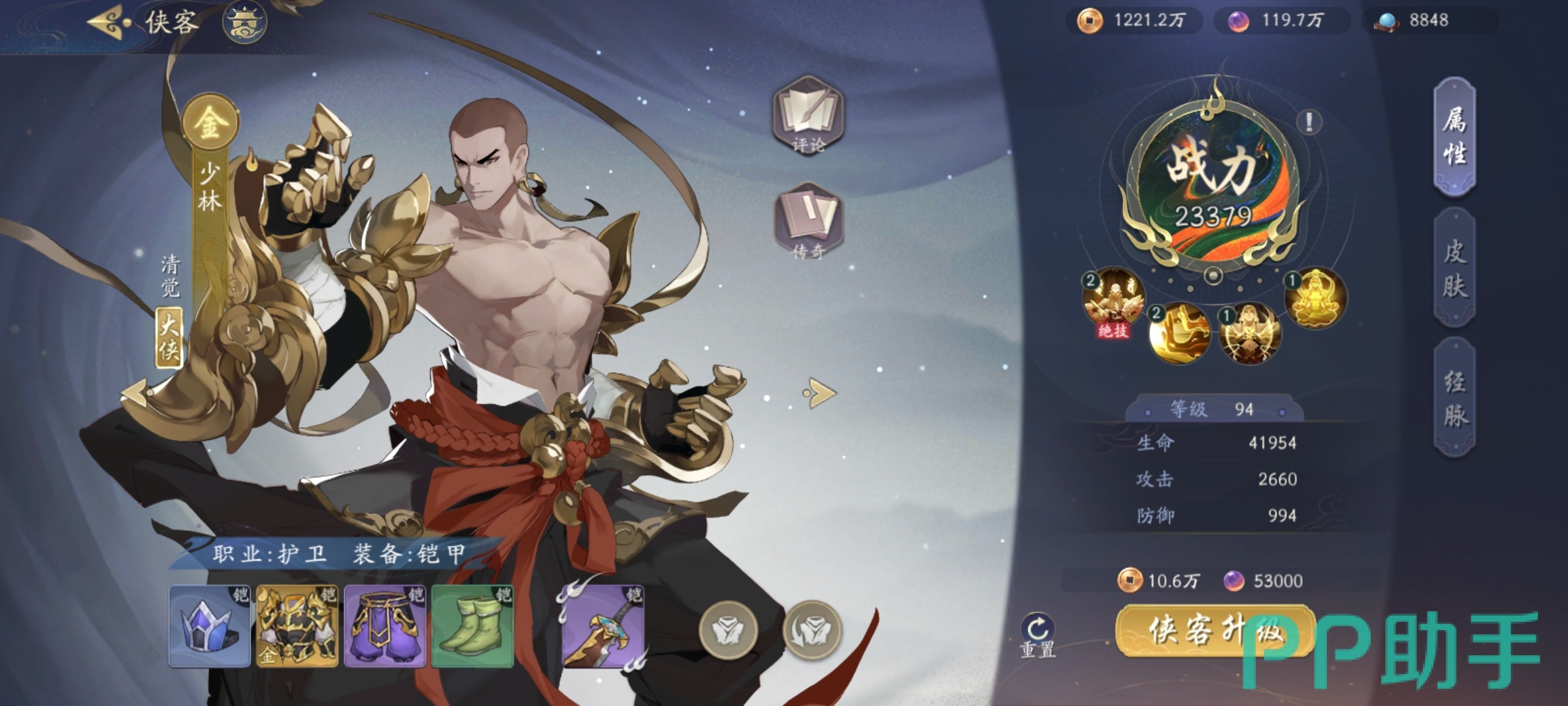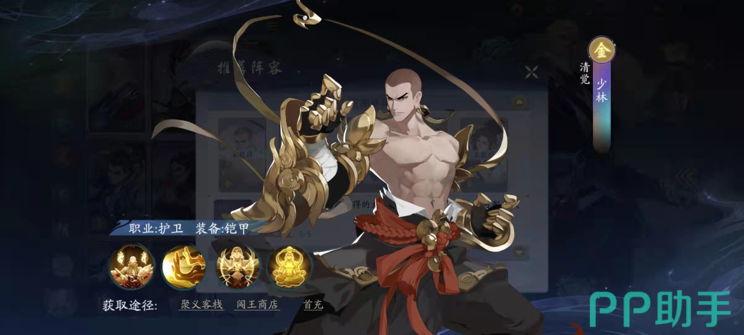 护卫的首选是少林,少林可以说是非氪金玩家应用最广泛的一个护卫角色,大部分的阵容都可以使用少林来进行配合。少林的绝技加非常厚群体的护盾,还能让那个群体恢复生命值,能免控,能击倒敌方,自身带护盾和减伤,可以说非常好用了。
