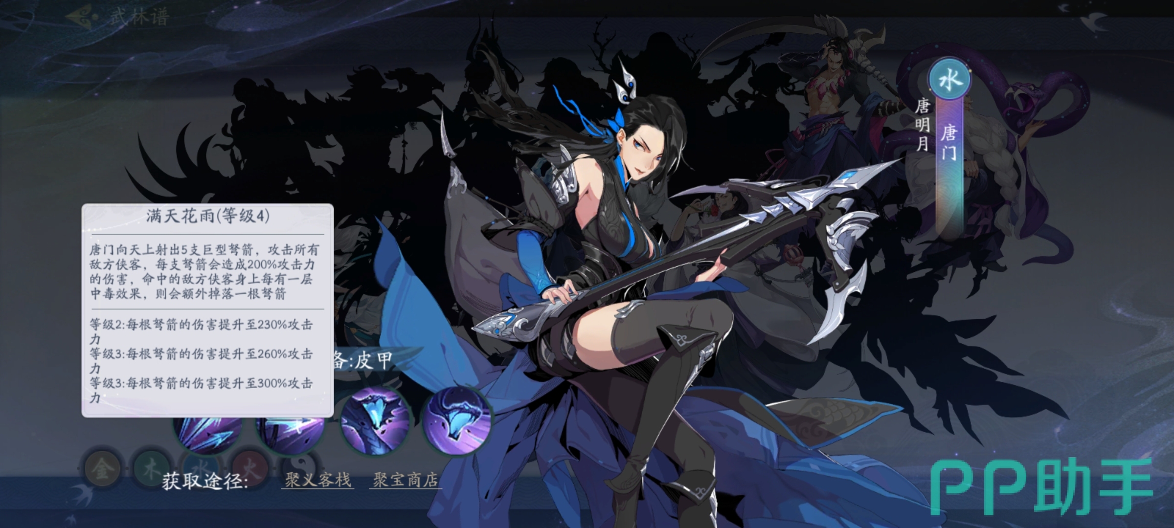 唐门和五毒这两个卡牌角色也是输出非常高,都是毒系攻击,持续积累伤害,唐门的绝技漫天花雨,攻击所有目标,并且是5个弩箭一起攻击,伤害非常可观,再加上叠加的中毒效果,队友阵亡的伤害加成效果,队友越少攻击越强。五毒在生命值充足的情况下,攻击能有加成,给所有敌方都叠加中毒的debuff,是可以作为一队的输出核心来使用的。