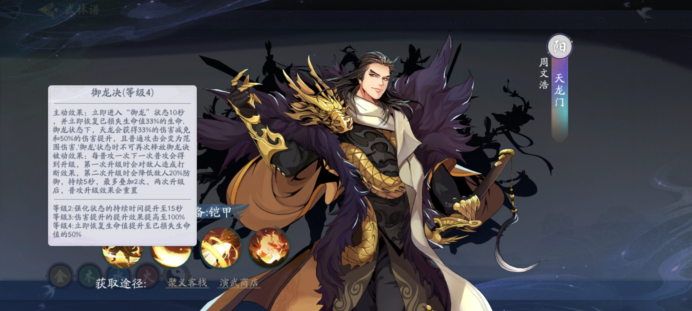 天龙门的绝技能够回复生命值,获得伤害减免的效果,本身就有减伤常驻,输出能力不必输出角色低,自身还肉,作为前排很好用。