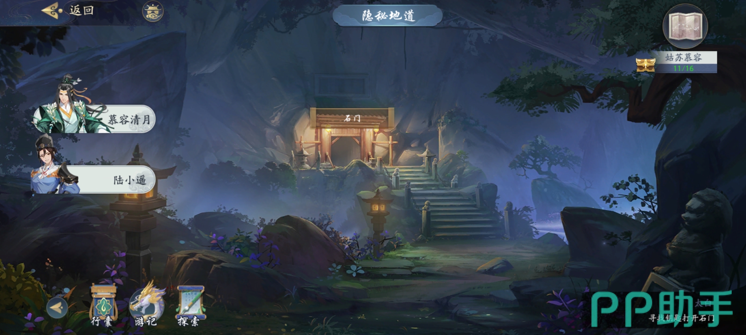 选择后继续按照故事线来进行,就到了要开石门的任务阶段,这个可以算是难点,但其实难度也不高,回到之前的场景仔细搜索带有亮光提示的区域就可以获取到钥匙碎片,一共有四个钥匙,第一个钥匙可以点击慕容清月对话会进行提示,仔细不错错过亮光就可以。