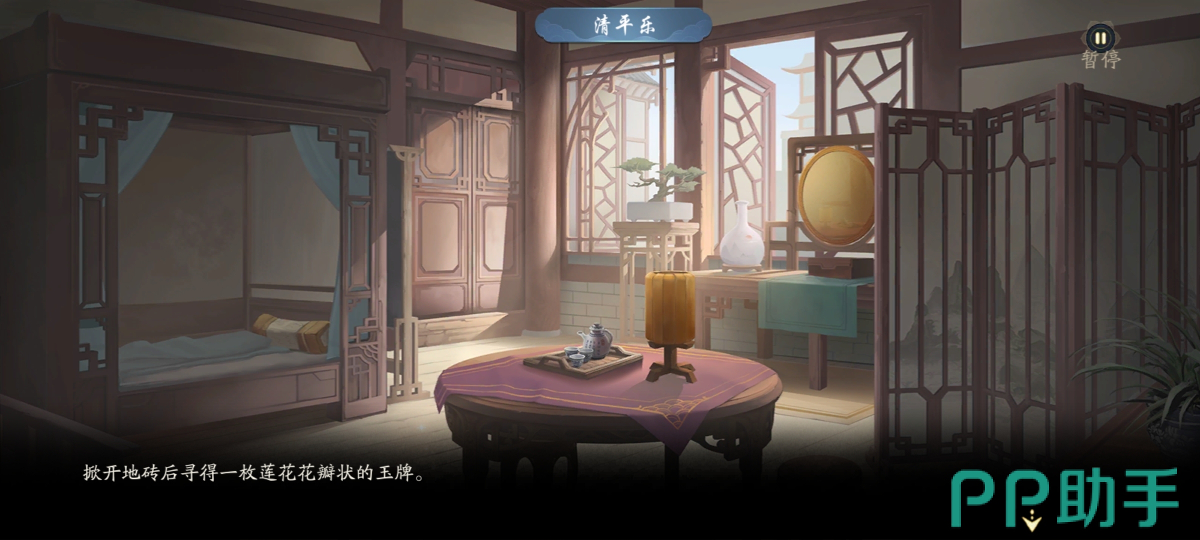 其他钥匙所在的位置也是和他其他的诗句有关,一把钥匙在菩萨蛮房间的屋顶,进入房间以后看到上方有闪光点,点击可以找到一把钥匙。