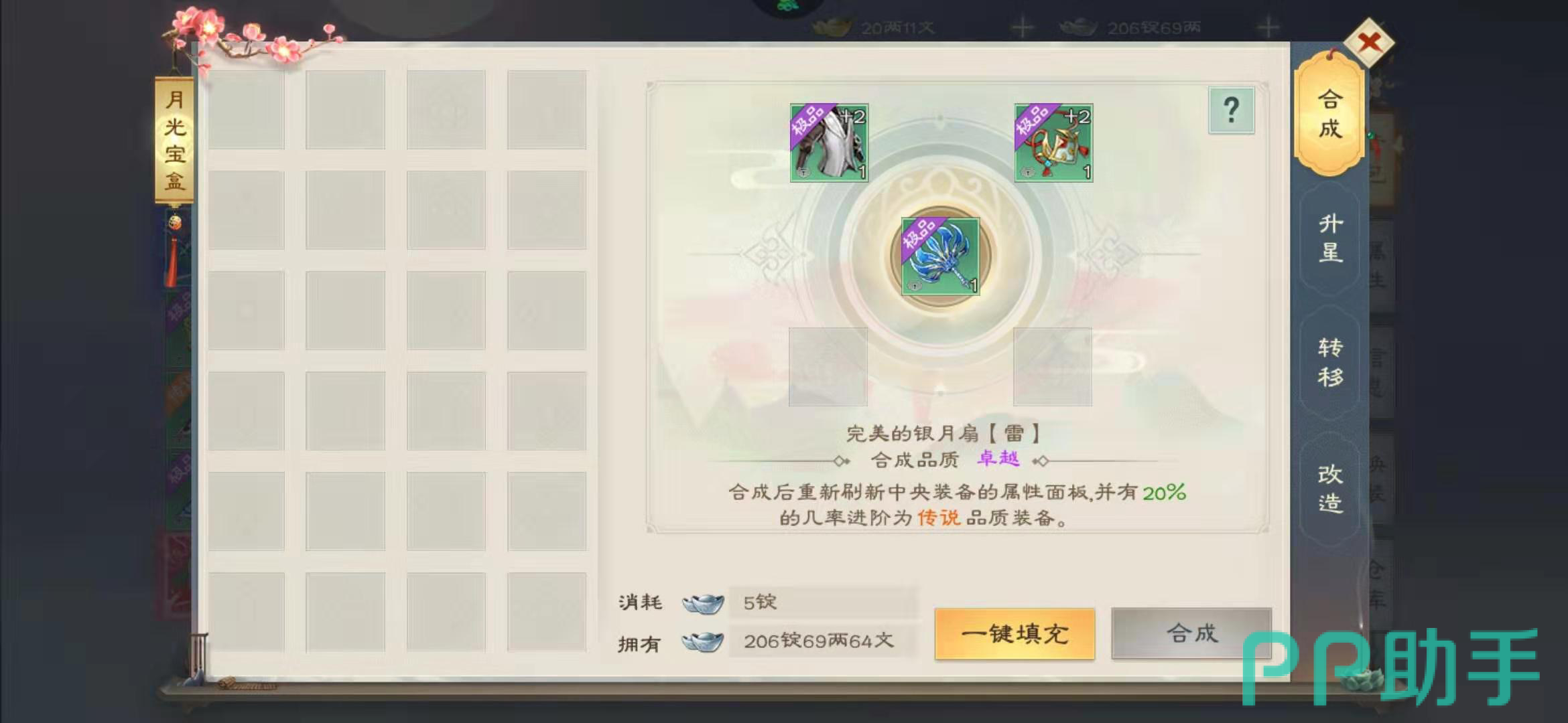 以上任务奖励的大多是低级的天魔石,还可以通过月光宝盒来合成为高级天魔石,5个一级天魔石可以合成为一个2级天魔石,后面的以此类推。