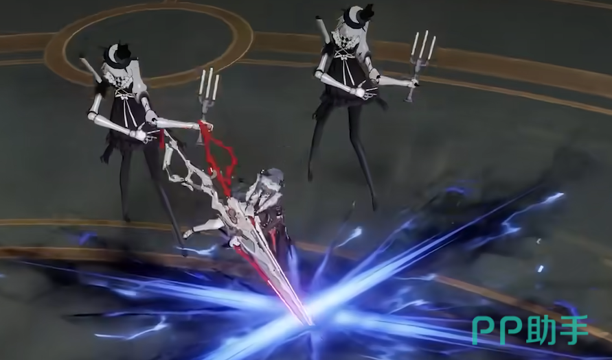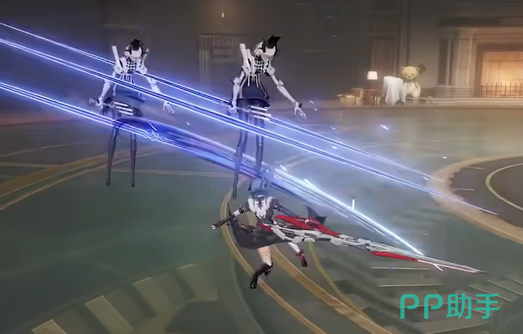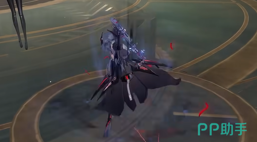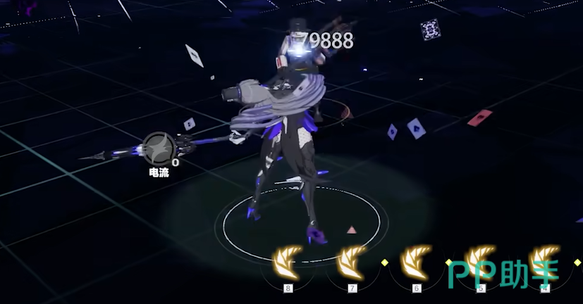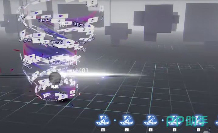 接下来说说第二个技能,它与第一个类似,同样是消除6个信号球,激活辅助机后会进行范围斩击。不同的是,第二个技能的斩击范围更广,且每次斩击伤害为200%。虽然单个斩击的伤害略低,但这种群体攻击在清场时可是相当有优势的。