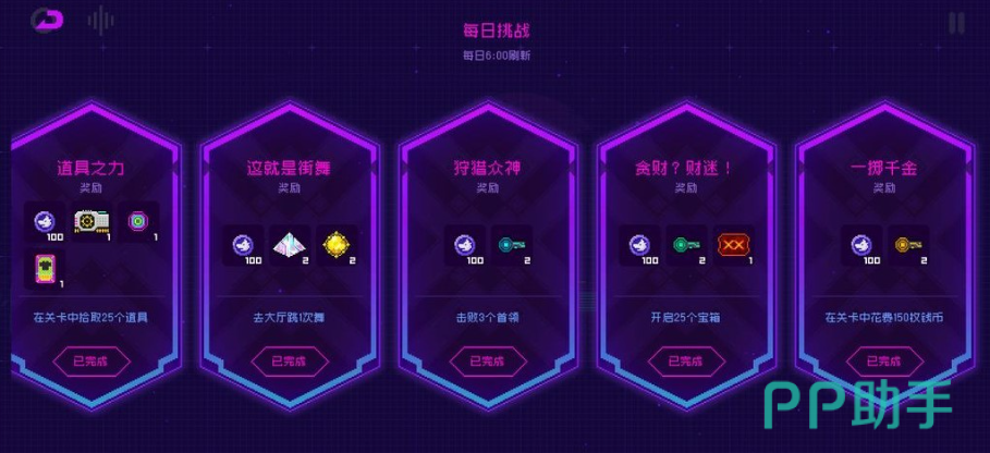 1、每日挑战:在这里的任务中玩家不需要看有哪些任务,直接进入副本打一次暗网就基本能够完成了,如果一次不够的话可能就需要打两次,所以玩家激活了挑战任务之后直接打暗网是非常不错的选择。而且暗网中的boss还会掉落3个霓虹币,这些霓虹币在日常游戏中是非常重要的。