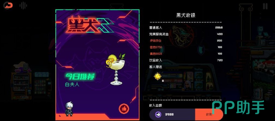 2、每日调酒:在这些玩家可以通过调酒来获得少量的霓虹币和角色好感度,如果玩家不知道怎么样调酒,那么可以记住一个人的口味,每天给他一个人调酒就可以了。