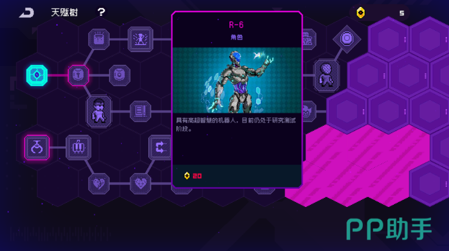 而r6作为一名机器人,玩家如果想要获得他就需要花点心思了,因为这个角色是能够白嫖的,也是白嫖角色中最厉害的,但是获取的难度就比较高,需要玩家将天赋树提升到一定的等级才能够解锁,而玩家想伙提升天赋树的等级就需要不停的去击杀boss。