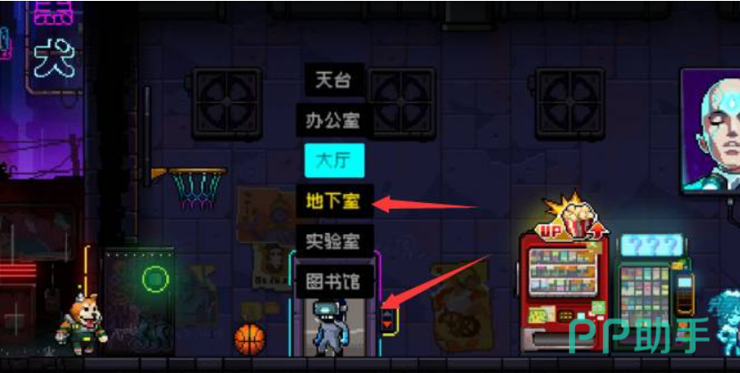 在地下室中,因为有着游戏中所有道具的图鉴,所以玩家需要区分清楚哪一块是是时装道具,当玩家通过电梯进入地下室中就可以发现左边的是纪念品都,而右边的是武器,只要是点亮的道具都是已经解锁的,都可以随意的更换。