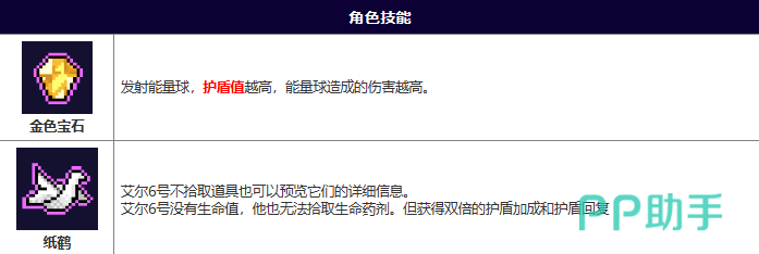 因为r-6是一名机器人,所以是没有血量的,敌人只能通过破坏角色的护盾才能够造成伤害。所以当r-6的护盾越高的时候,那么伤害也就越强大。所以在战斗中如果有血的时候可以不捡,但是护盾的话那肯定是要拾取的,这样在后面的战斗中会更加轻松。