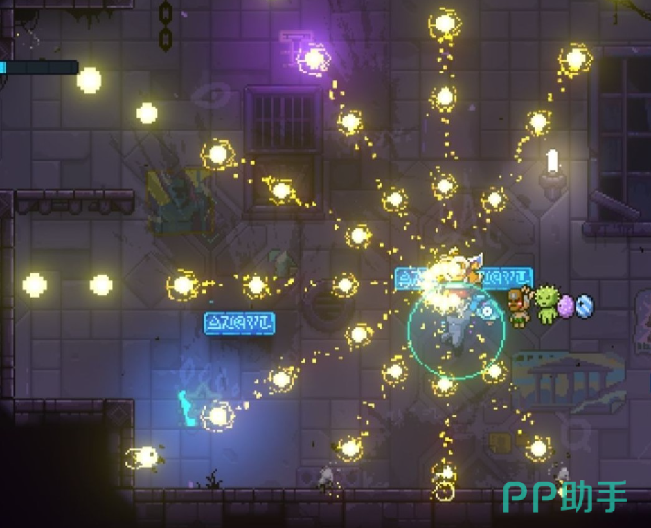 这款游戏主打的就是像素级弹幕射击游戏,因此这款游戏中有着非常炫酷的射击特地奥,并且这款游戏中枪支道具非常多,玩家可以在每一句战斗中都进行更换。在每一个地牢中都有着数十个房间,而且每一个房间都有大量的贵啊我,当然这里也有一些隐藏的传送阵,但是需要触发条件才能够开启。