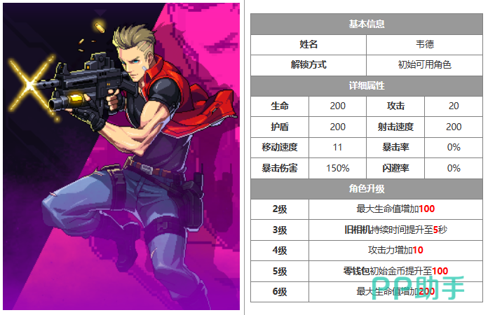 而韦德在游戏中不仅伤害非常好,而且他在游戏中的血量也要比其他的角色要后很多,最重要的是他还有闪避技能,能够在关键时间闪避敌人的攻击,当然这个操作队伍新手玩家可能会比较困难,如果在面对boss那种全屏攻击的技能的时候比较使用。这个角色的获得方式也是通过任务才能够获取。