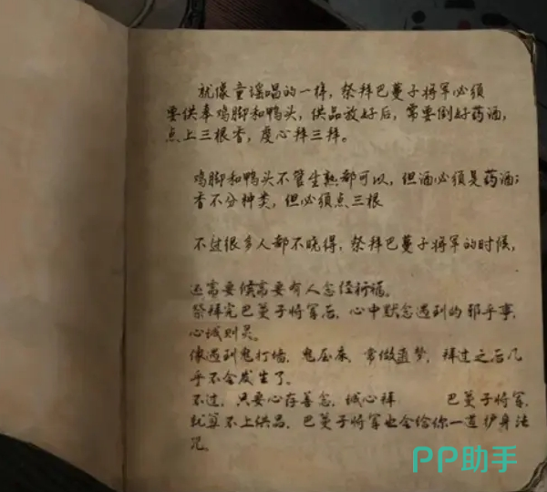 第二章剧情后算命先生会给出解开鬼打墙的提示,要注意纸条的顺序是与密码顺序一致,否则就算玩家解开谜底,也很容易搞错密码。完成后前往中药铺完成多个益智小游戏可拿到阴阳玉佩,再前往茶馆用阴阳玉佩换来光盘,修好扩音器后拿上酒水到小庙祭拜,同时使用提前录好的扩音器。
