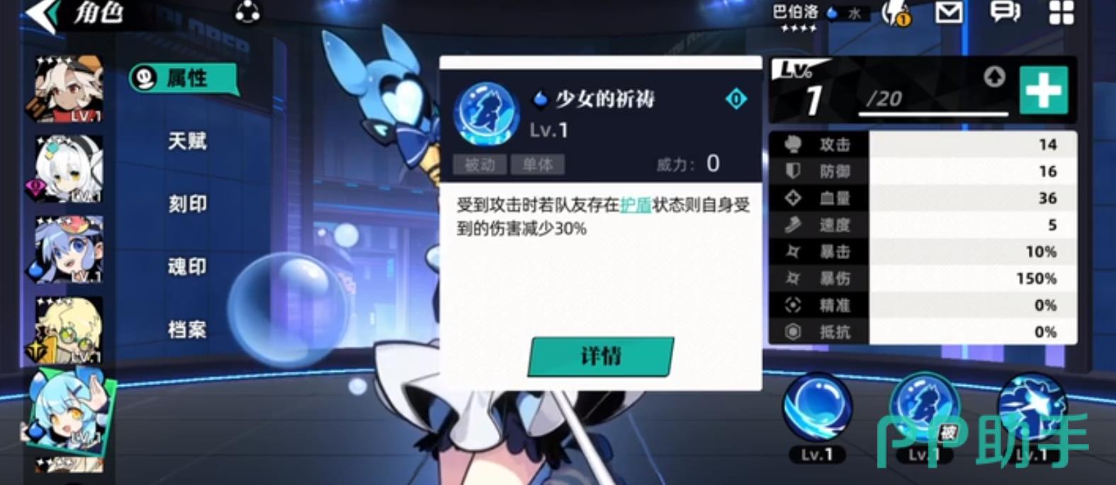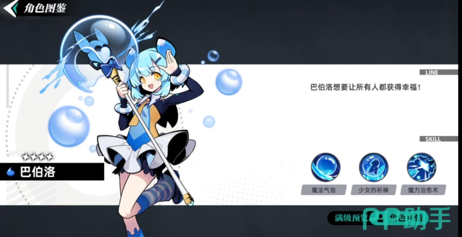 巴伯洛是一个防御性的职业,她可以为所有人加持护盾,她的第一个技能就是魔法泡泡,每一次施展都有70%的伤害,但是每一次施展之后,巴伯洛的血量都会下降15%。二技能:少女的祷告,这是一个被动技能,当巴伯洛被击中的时候,它会降低30%的伤害,但是无法提升。