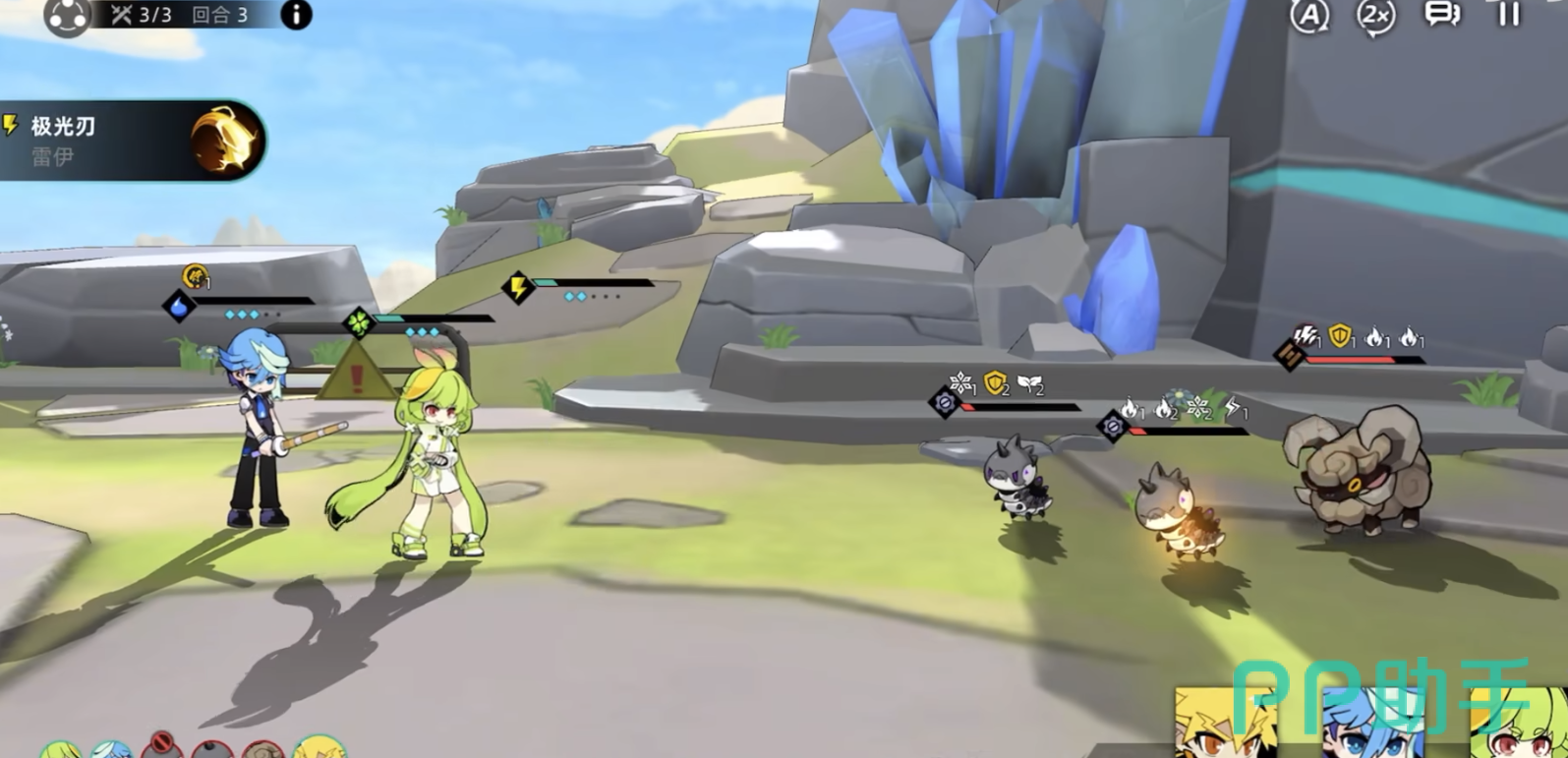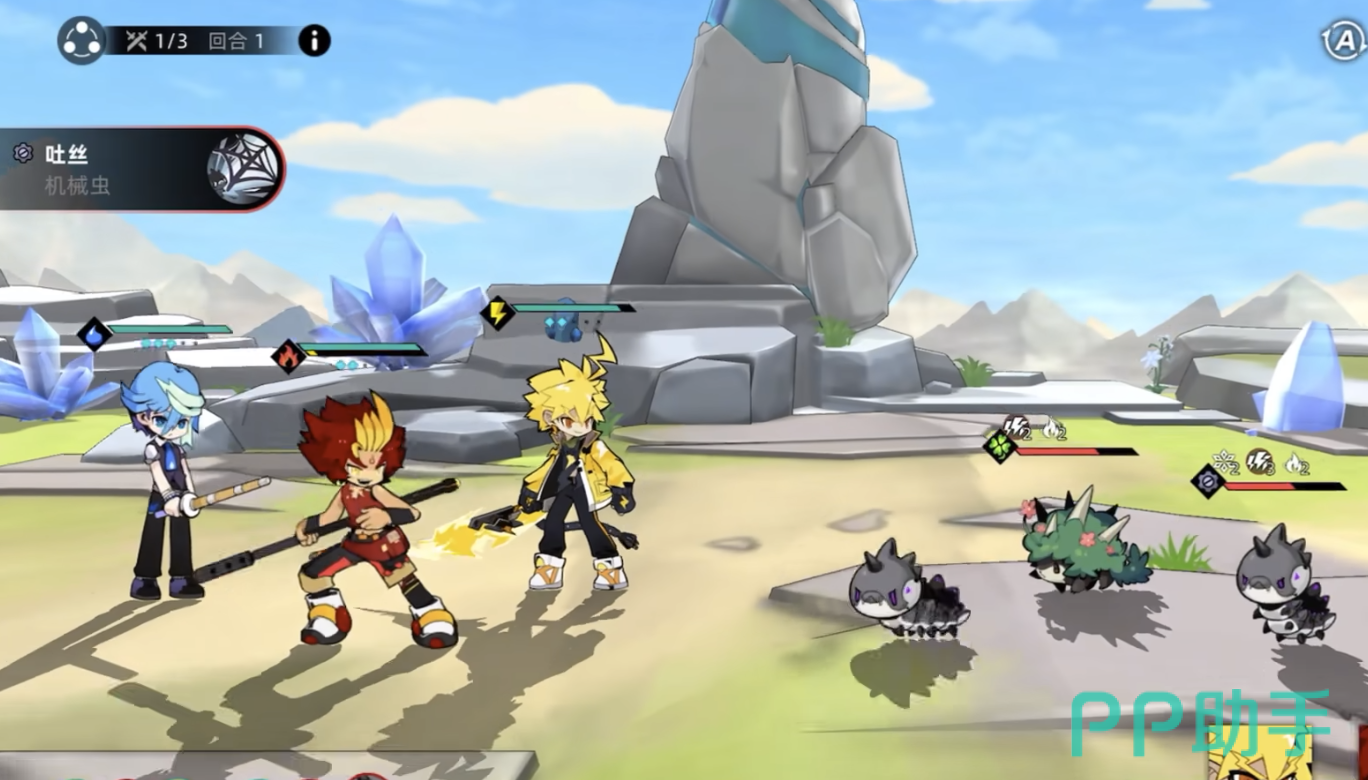 赛尔计划的战斗是传统的回合制玩法,也可以看做是战棋。总计6个游戏角色进行对战,玩家还可以选择3个游戏角色当作替补,可以在战斗时替换战斗角色,随时改变战法思路。这样的设计特点让游戏战斗的上限非常高,玩法思路奇多。当然,游戏对替补玩法也做出了一些限制,那就是当玩家替换场上角色时,会失去放大招的行动能力。这也算是限制玩家随意使用替补的一种机制吧。