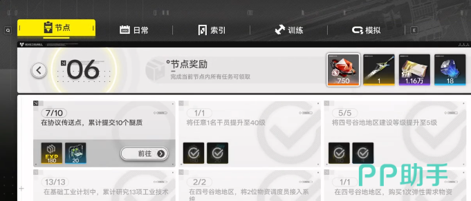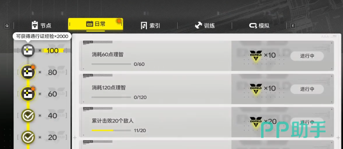 在完成日常任务之后,就可以解锁权限等级的奖励,这就等同于是资源大礼包。随着权限等级的提升,不仅可以拿到4000玉的奖励,还可以解锁40张基础寻访券,还有一个武器10连。折算下来还是能够减轻压力的。在日常任务中,玩家还可以看到有各类的商店以及玩法任务,这些地方也能够带来足够的奖励。总之只要把日常任务全部的完成,那自然就可以让玩家轻松的获取所需要的奖励资源,这些都是比较重要的。