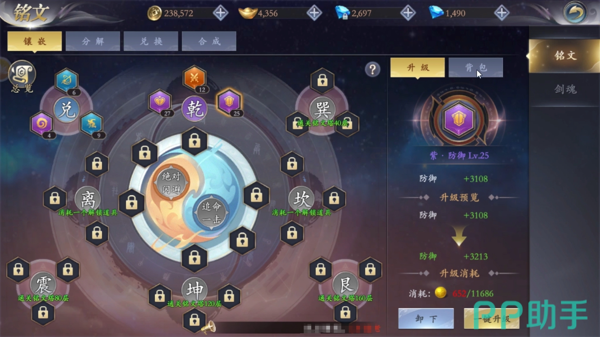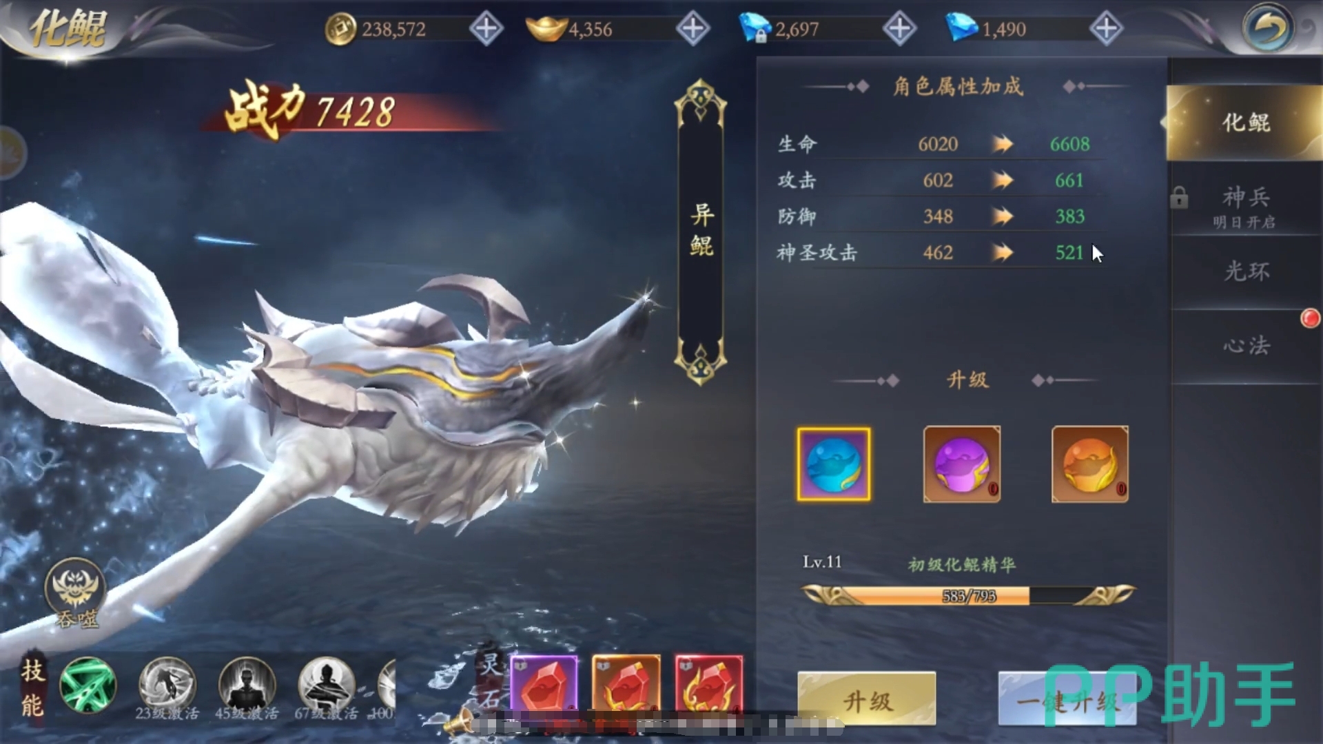 另外,这部作品还有多种能间接提升人们战力的方式,诸如化鲲、光环等,它们可在人们本身的属性基础上进一步强化角色。而铭文更是这部作品的重点,每个铭文在镶嵌后都能有效地去提升角色的属性数值,升级后的效果更是十分夸张。最重要的是,提升这些功能所需的材料都不难获得,角色养成起来也较为轻松。