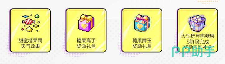 谁不想亲手制作一个可爱的糖果熊?在这个活动中,你将化身为糖果大师,收集糖果碎片,制作出精美的大型玩具熊糖果。跳起糖果舞,迎接满天的糖果雨,奖励也是超丰厚。从甜蜜糖果雨天气效果,到高级道具结晶,再到超越石等神秘奖励,手到擒来。