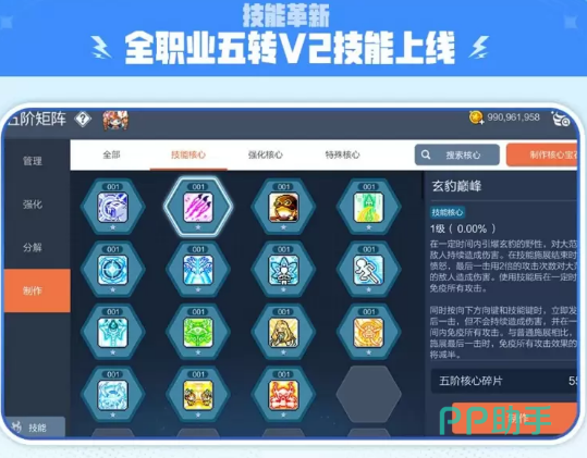 五转V2技能的获取方式与V1技能类似,但有些新的变化值得注意。首先,玩家并不能直接就解锁这些技能,而是需要通过收集“核心碎片”来合成。这些碎片并不是轻松就能获得的,它们需要通过“神秘力量战场”和“神秘任务”这些途径来收集,因此,大家要提前准备好,确保自己有足够的碎片来解锁这些强力技能。