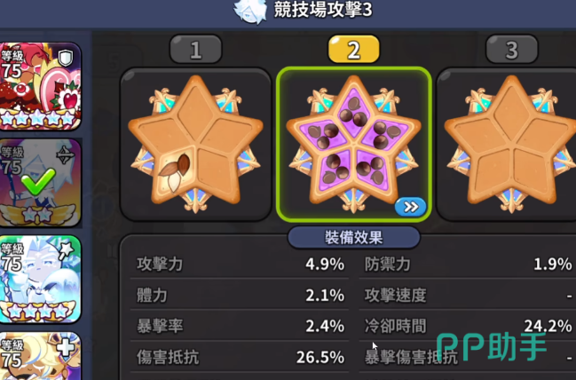 接下来就是巧克力脆皮饼干,由于该饼干属于前排突进类型的角色,所以在进行搭配的时候最好选择多汁苹果果冻配料,此次的搭配能够极高地提升暴击率。由于纯香草饼干是后排支援类型的饼干,所以在战斗的过程当中一定要及时的为队友提供增益。除此之外,还要提供治疗效果,所以在进行配料搭配的时候,小编比较推荐酥脆巧克力豆,因为这样就可以减少技能CD。