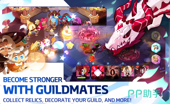 除了拥有策略性的玩法之外,还可以在游戏当中进行自由搭配,只要能够通过关卡就能够解锁各种各样的饼干人。每个饼干人都独具特色,就比如警探杏仁果饼干来自于魔法之都,纯香草饼干来自于治愈之城,浓缩咖啡饼干以及德玛莲饼干来自于鲜奶油共和国。除了各具特色的角色之外,还拥有着多种玩法,其中包括工会讨伐、守护之战以及王国竞技场等等。