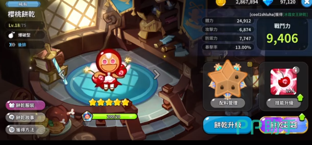 圣莓果饼干拥有着特别高的级别,在所有饼干的排行榜当中,它的能力绝对可以达到优级,就连防御值也相当出色,战斗力更是惊为天人。就算是在初始的时候也有着很高的战力,其中的防御值以及攻击力合为一体,能够爆发的特别完美。如果达到了满级再搭配上一些配料,就可以让体力以及速度发挥到极致。