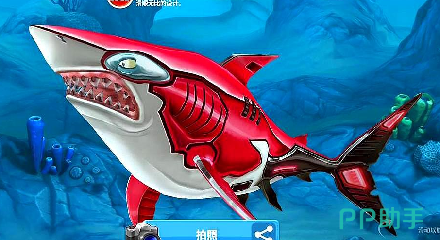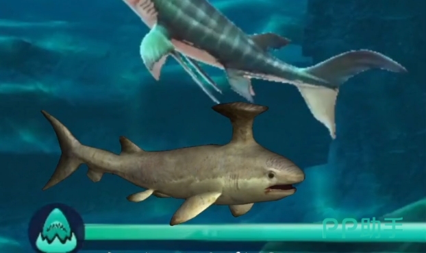 首先介绍一个非常凶残的鲨鱼,叫做大槌鲨,这个鲨鱼的技能在游戏中是属于有控制的一类,它自带的技能是电击,这个技能释放之后在周围的一片区域中的鲨鱼都会陷入眩晕的状态中,而且因为体型很大,所以可以轻易的吃下一些体型较小的鱼类。