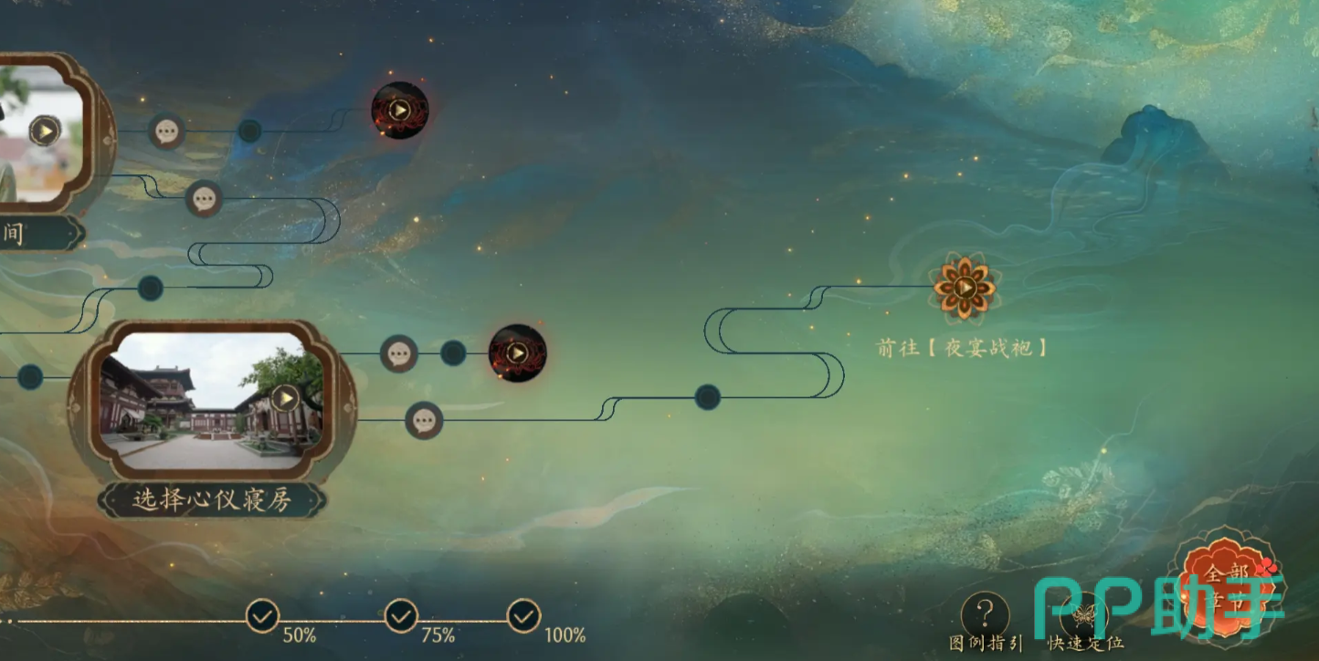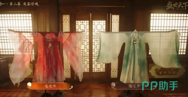 在第二个章节夜宴战袍内,衣服的选择需要点亮谪仙以及明艳,否则在第十五个个章节时,玩家将会立刻被处死。