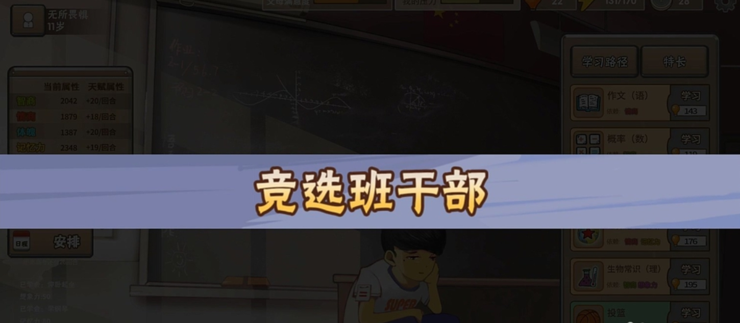当最后如愿当选为班干部,能会得到相应的悟性值奖励,悟性在游戏中非常重要,况且竞选班干部是相当比较容易的,因此大家要尽量争取。当然如果竞争班干部失败了,可以点击设置返回主菜单,重新进入游戏,再次竞选班干部,直到你成功为止。