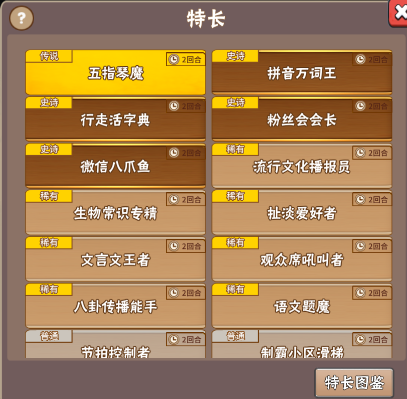 所以还是要注重特长的质量,普通级别的特长可有可无,传说级别的难获得,因此也可以专注于史诗级别的。
