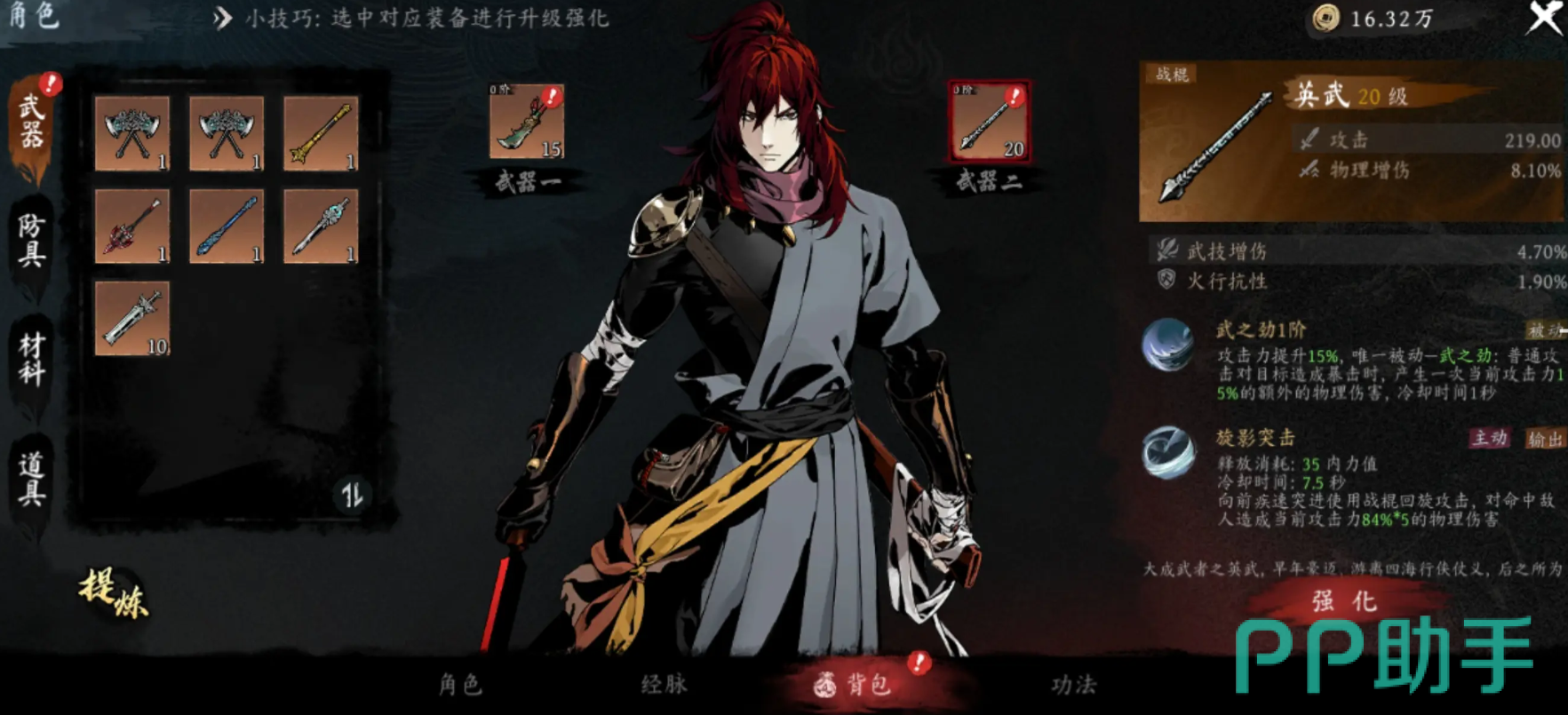 目前获取武器的主要方式是通过打造系统,所需材料有两个来源,一是主线剧情的第4到第8章,二是角色达到15级后开启的长路副本。对于武器的升级与突破材料,有两种获取途径,一是分解多余的武器,二是在角色达到8级时解锁的修武系统中的武器材料副本,值得注意的是,武器分解会返还除铜币以外的所有材料,在这种强调操作体验的游戏中,手感至关重要,直接影响到游戏的流畅度和乐趣。