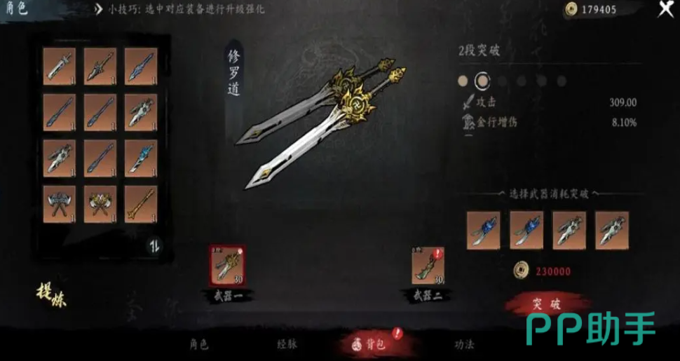 这里武器系统是有双持效果的,也就是说大家可以同时选择两个武器作为自己的核心武器,那么带来的叠加效果才是最强的,所以在武器选择上面不同于传统的武侠那样有单一性,这里两把武器的属性在有足够加成的情况下,还可以带来足够的被动技能提升能力,所以就算是一些次要装备的武器带来的战力提升也是非常强的,所以这里大家不用根据主次分明的武器能力来进行选择,而是要考虑这两个武器能不能进行均衡的搭配。