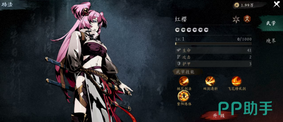 接下来再给大家介绍一个英雄叫做红樱,这个角色在使用一些剑法的时候可以带来很强的效果,她在使用武器的时候造成的攻击能力是最强的,在命中敌人之后还可以造成3次10%的伤害效果,这里如果使用双剑作为武器的话,她的战斗力是最强的,而且只要是攻击目标达到连续5次命中的话,这里就可以额外再次打来一个缭乱斩的技能,这个技能对于命中敌人来说是可以再次触发一次攻击的能力,而飞花缭乱剑这个技能,是让她的缭乱斩造成的伤害可以提升50%的数值,所以她后期的炼体之后带来的攻击能力会更高一些,但是同时她在生命下降的数值上面也会更高一些。