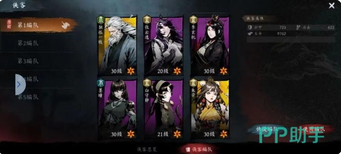 先来说说侠客系统,由于之前测试阶段暴露出的诸多问题,大量侠客都经历了回炉重造的过程,如今游戏中总共仅有13个侠客可供选用,其中金色品质的更是寥寥无几,只有独孤一败和朱荣这两位,这也直接导致当前的流派套路相对单一,搭配攻略的选择空间较小,在这种情况下,比较推荐的编队策略是选择两金四紫的组合来提升整体属性。