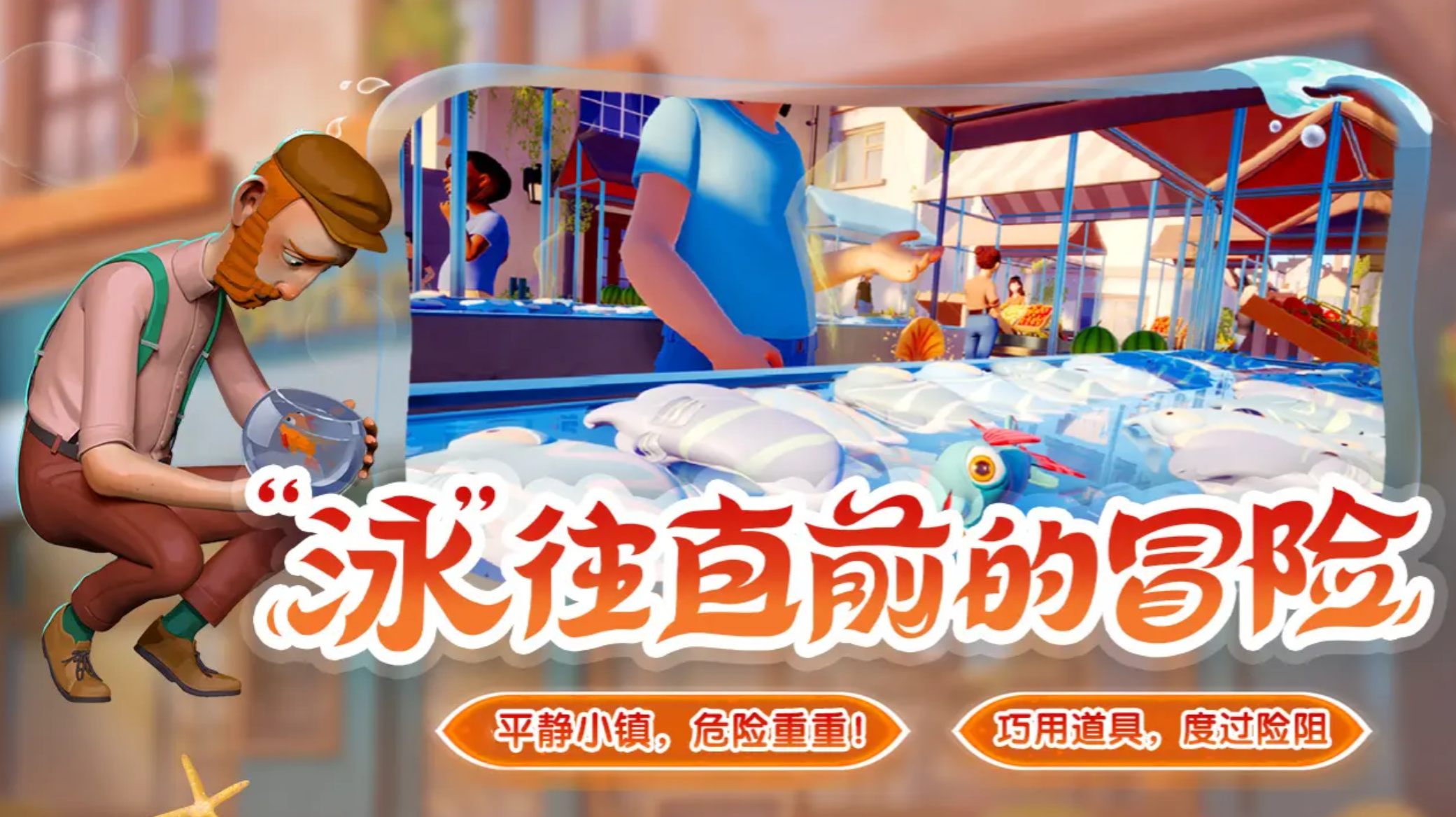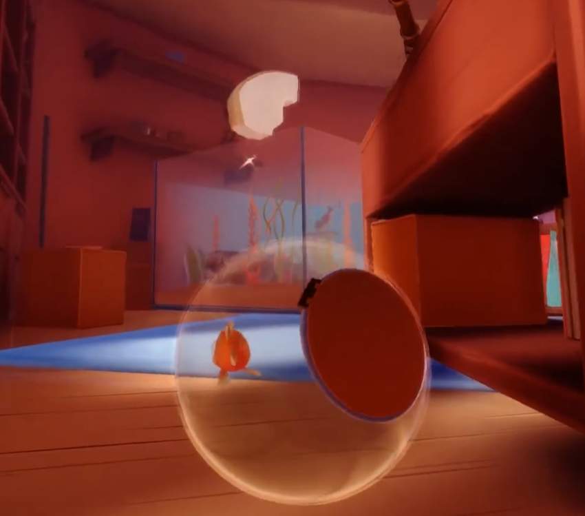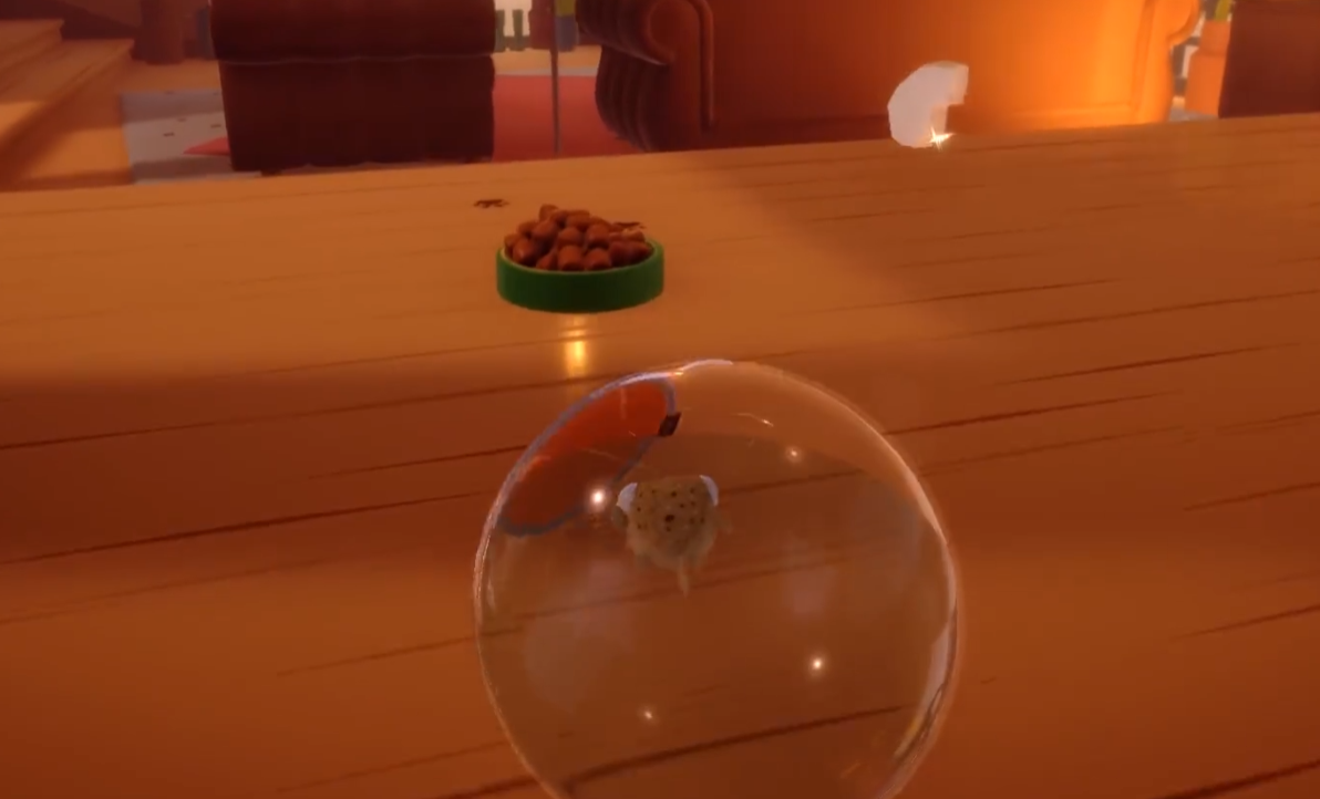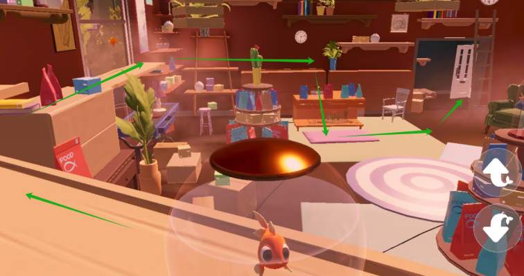 游戏开局会呈现一段丰富的剧情,几条小鱼因一包神奇鱼食拥有了意识,却又因不同买家而分离,玩家所操控的金鱼要历经重重冒险,最终回归大海与好友团聚,在剧情前期玩家需操控金鱼在主人投食时吃饱,操控金鱼开启冒险,首要任务是转动鱼缸来到宠物店外,建议沿着柜子缓慢前行,柜子上的包装袋可作为缓冲物,防止鱼缸跌落或掉下柜子,掉落时注意找好角度利用瑜伽垫缓冲,到达地面后,要积极探索周边环境,尽可能保持金鱼的饱腹状态。