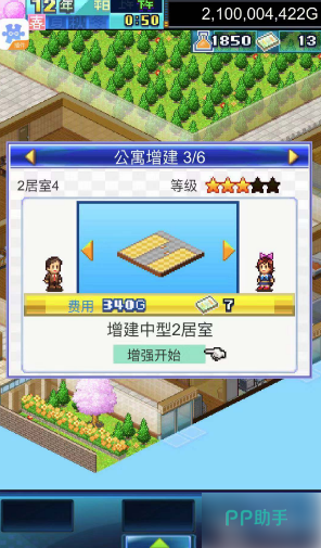 在刚开始的时候玩家的公寓很小,就只有4个小房间。在人数不停的增多之后,就要扩建自己的公寓。在这个游戏里面小房间是没有办法扩建的,因为一旦设置好了之后就会固定。所以玩家每一次在增建房间时,只要确定好了房型,那么就没有办法再改变了。小的房间没有办法进行扩大了,那么玩家可以通过增建的方式得到大的房间。