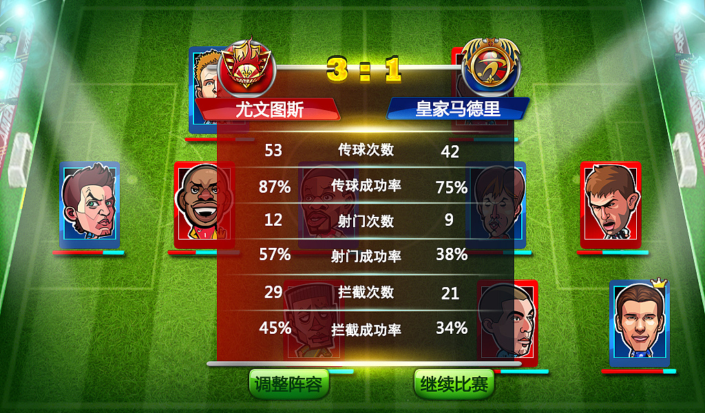 每次比赛后,球队各个球员属性都会详细呈现在玩家面前。除此之外,还有每个球员在赛场上的表现,以及薄弱点解析。玩家可以根据这些对球员进行专项训练,提升球员属性,从而应对球队后期的比赛。