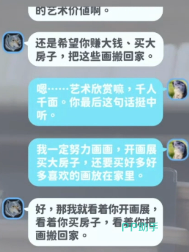 想达到李云思的隐藏结局「DESTINY」,玩家得经过仔细策划和多步骤的选择。首先,玩到游戏章节二的时候,你会遇到“赚钱计划”环节,这里要选去李云思的家,然后在“名家之作”场景里面与她进行网友相认。这一步至关重要,需要你准确选择对话选项,也就是按照以下的顺序来选择,第一个选毕卡索是渣男,第二个选看着就堵心,第三个就选画家心眼儿多,来解锁成就。