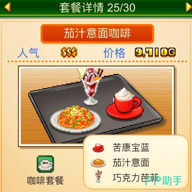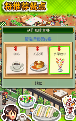 这款由开罗所创作出来的经营类手游,其中有很多高收益的套餐,都需要大家亲自了解。因为在每次制作这些套餐时,需要的菜品和材料都完全不同,比如首先我们一起了解的就是女性套餐。这也是专门为更多女性创作的高利润产品,收益特别高。在套餐里都有大量的配方,比如豆沙咖啡,红豆汤以及水果巴菲。如单凭买卖时可能利润并不是特别高,但如果以套餐的形式进行出售就收益很高了。