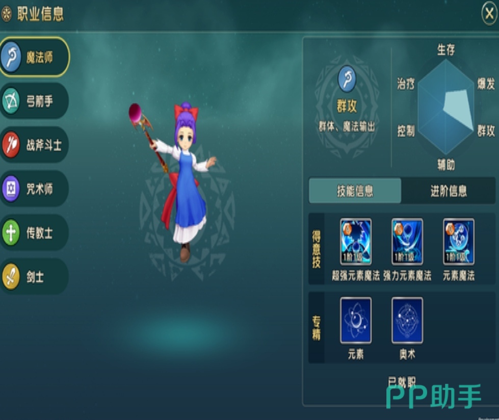 游戏中一共有六种不同的职业,其中法师这个职业是非常受欢迎的,比较适合在远程进行攻击,可以为敌人造成魔法的攻击,其中还有五种属性点可以来增加,分别是体力以及力量,还有强度速度与魔力,这些属性点可以为职业增加更多的战斗输出强度,如果玩家们使用法师这个职业,魔法是非常重要的,所以玩家们可以将魔法全部加满,来改变自身的流派,属性的加点主要是根据大家想要造成什么输出有关。
