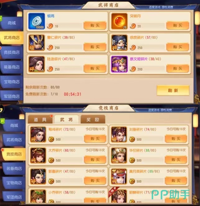 在招募玩法的左侧,大家在抽取100次之后,是可以进行许愿的,可以选择一个红色武将和两个金色武将作为抽奖愿望,这样抽取的概率会更加的高!游戏中还给各位准备了【竞技】玩法,这个竞技玩法主要分成了三种不同的对战,大家可以先参加单个的竞技挑战,其中的结义赛和龙争虎斗玩法是需要玩家们等级达到78级的时候才会开启的!每天是可以挑战10次的,这个玩法主要是为了在竞技挑战中获得奖励,从而在【竞技商店】中,来购买一些升级所需要的材料!而且每周会进行一个结算,推荐大家去体验!