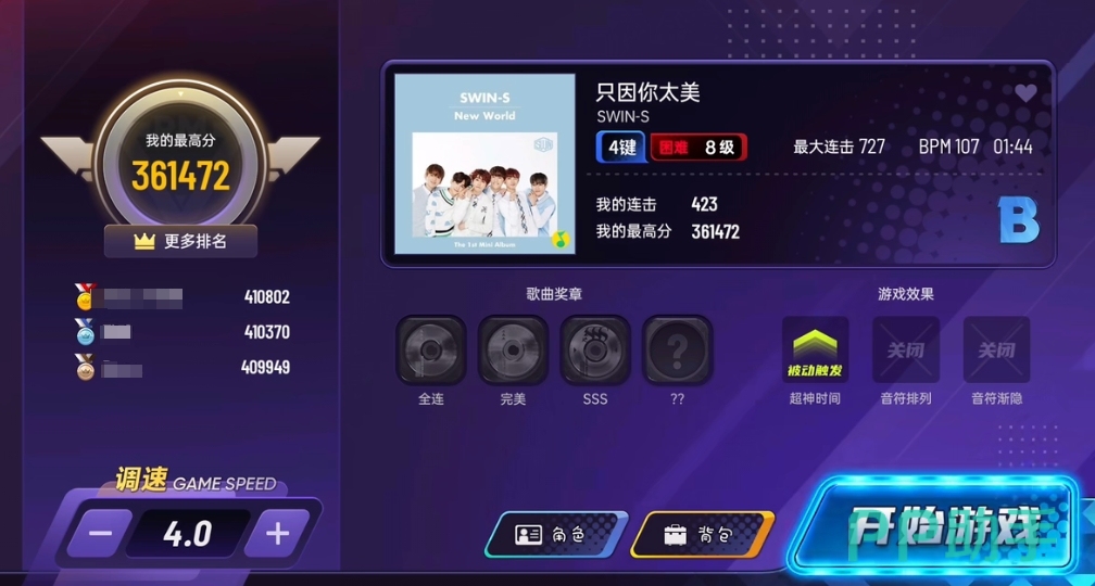 部分歌曲若尚未下载完毕,可能导致游戏无音。