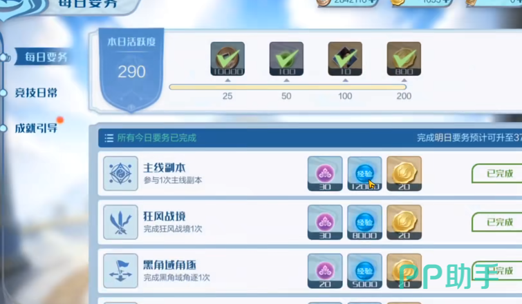 游戏中的【历练】玩法主要分成了两个部分,一个是主线任务和【狂风战境】两大类,主线任务的历练就比较简单了,玩家们在推进剧情章节后,就可以选择其中一个章节进行历练,要获得经验值,而且这个主线任务是可以领取挂机收益的!