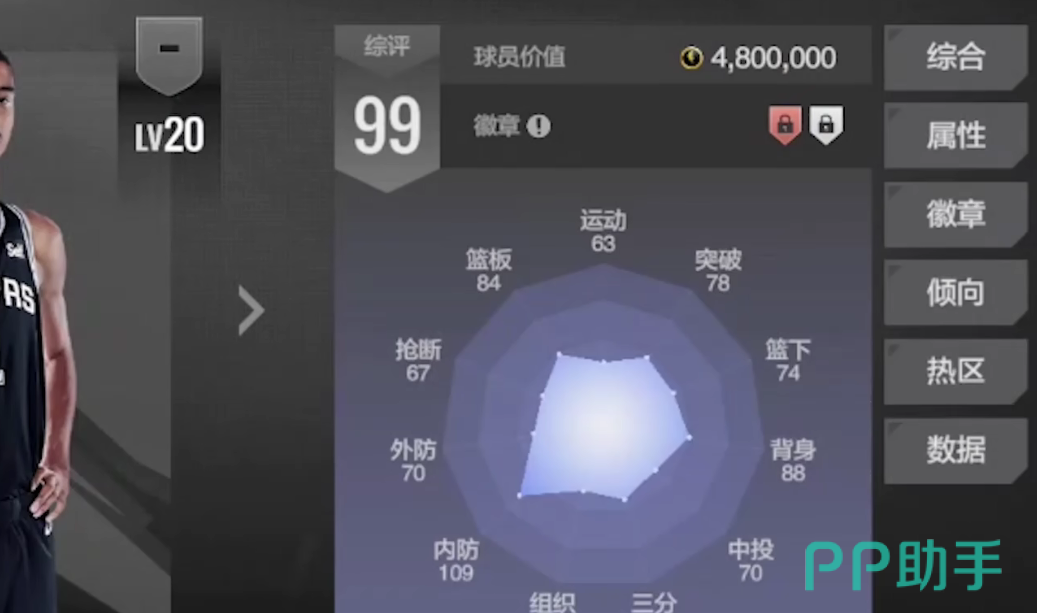 最后一个小编非常推荐的是德拉蒙德,这个球员角色在各项属性上,尤其是篮板能力上是顶尖的,数值属性非常高,他最为擅长的是进攻篮板和防守篮板,根据这两个属性,他在盖帽这方面的能力也是非常出色的,基本上是一个非常强大的角色,不过需要氪金度也高。