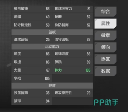 哈登的运动天赋和全面的技术能力还是很不错的,他的运动数值高达86,这一数据充分展现了他在场上的活力,无论是快速突破防线,还是灵活转身过人,哈登都能凭借着出色的运动能力轻松应对,横向敏捷的数值同样达到了86分,这使得他在球场上的移动顺畅,他能够在瞬间启动迅速地改变方向,轻松地摆脱防守球员的纠缠。