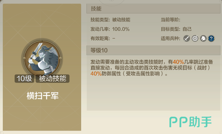 作为西汉另一位传奇将领,霍去病的技能同样具有极高的战术价值。他的“横扫千军”具备跳过准备回合直接发动的能力,使得依赖主动技能的阵容可以提前发动强力攻击。而更令人瞩目的是,他的攻击可以无视敌军15%的防御,直接对敌方阵容造成有效的伤害。这种破防能力让霍去病在面对高防御敌人时极具优势。