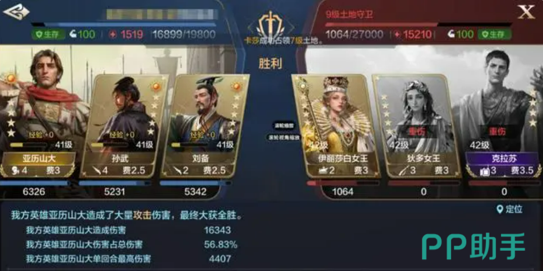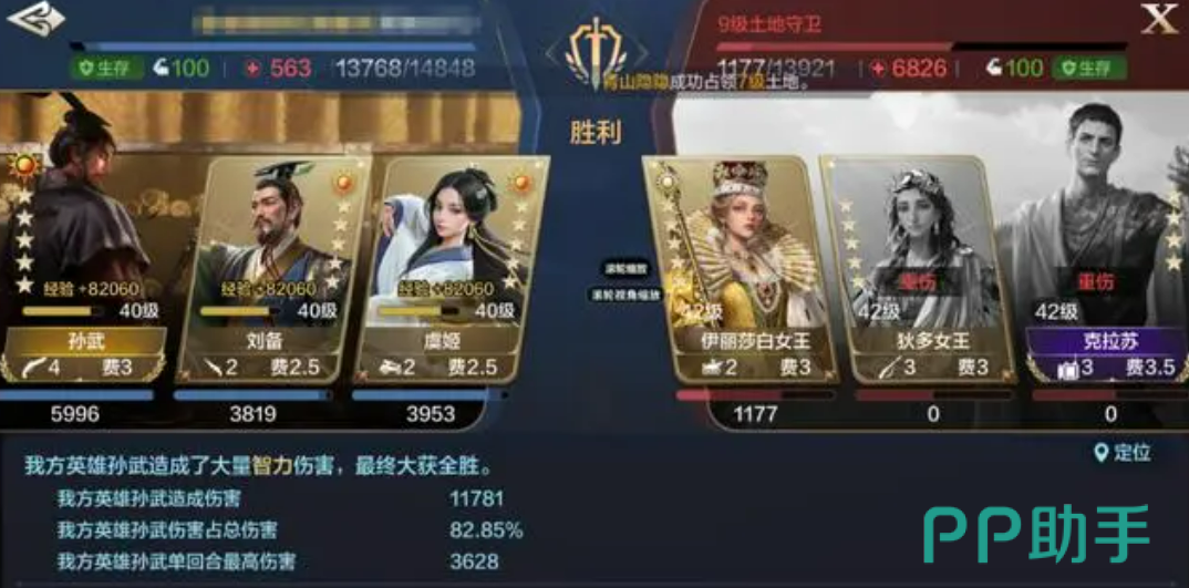 孙武和伯里克利的组合,不仅能够打出高效的输出,还能够通过精准的控制技能让敌人无法反击。配合虞姬的二阶头衔技能,这套阵容能够在控制敌人的同时保持稳定的输出,战斗节奏掌控得十分完美。孙武携带阳焰后,能够进一步提升输出能力,整体作战表现非常可观。