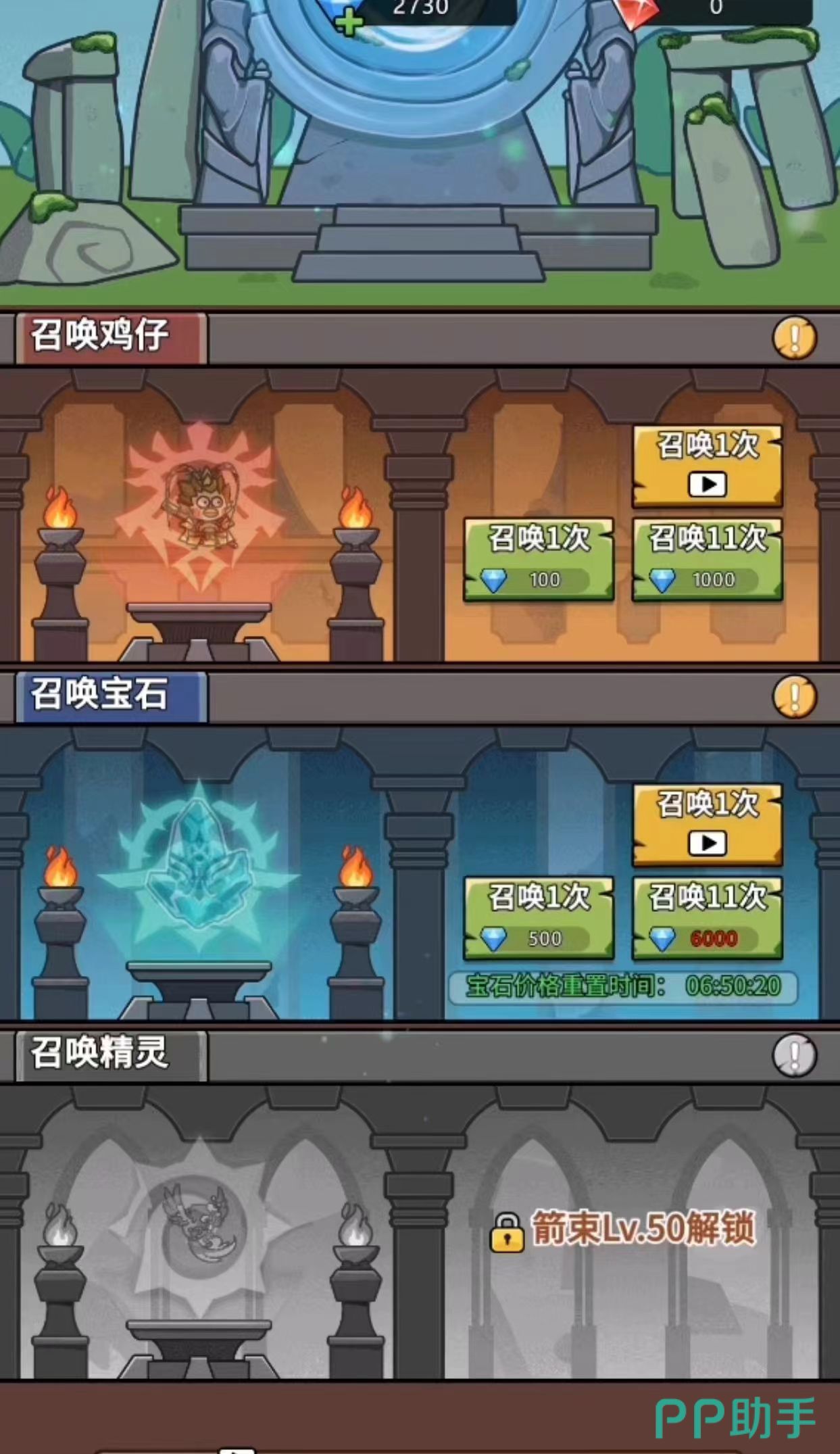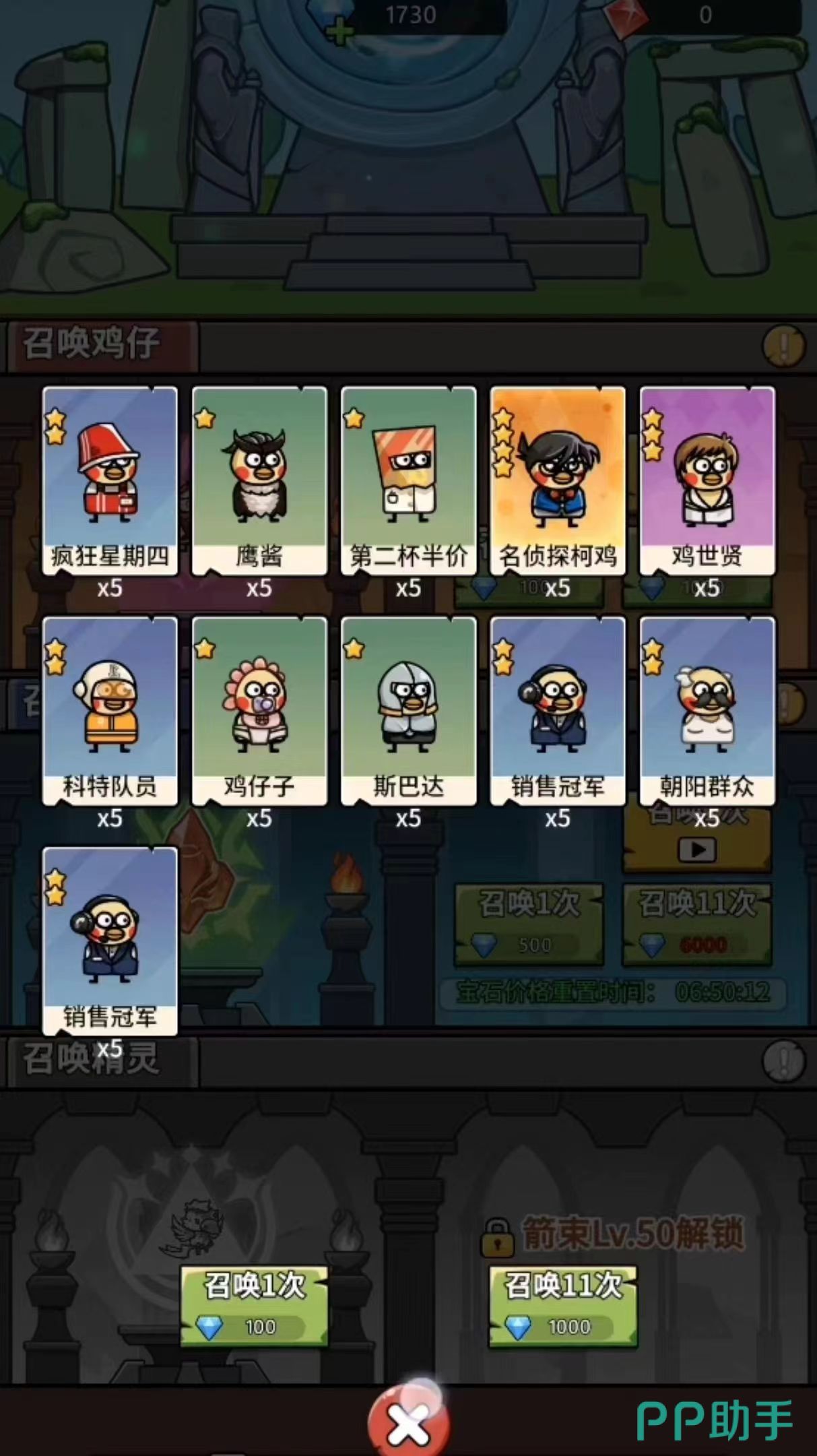 玩家在进入游戏后可以进入火炉中进行炼制箭矢,箭矢同样分为不同等级,相同等级的箭矢可以合成炼制更高级别的箭矢,等级越高,箭矢为小鸡仔提供的攻击力就越强。玩家要是想获得新的小鸡仔角色,可以通过解锁完成关卡和挑战,也可以在商店用金币进行购买,同时可以利用召唤的方式进行获取,但是这个方式需要消耗钻石。