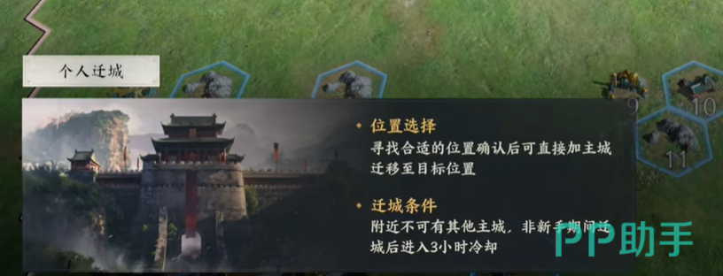 迁移城池就像落户口一样,还需要用到一个迁移令,只有这个道具才能够让城池迁移到相应的位置。而迁移令在获取时的途径也是很多的,日常任务的完成以及主线任务完成,都可以有机会获得迁移令,这并不是一件困难的事情。节日的时候,他会推出一些限时活动,只要积极参与就能拥有一个或者是多个迁移令。
