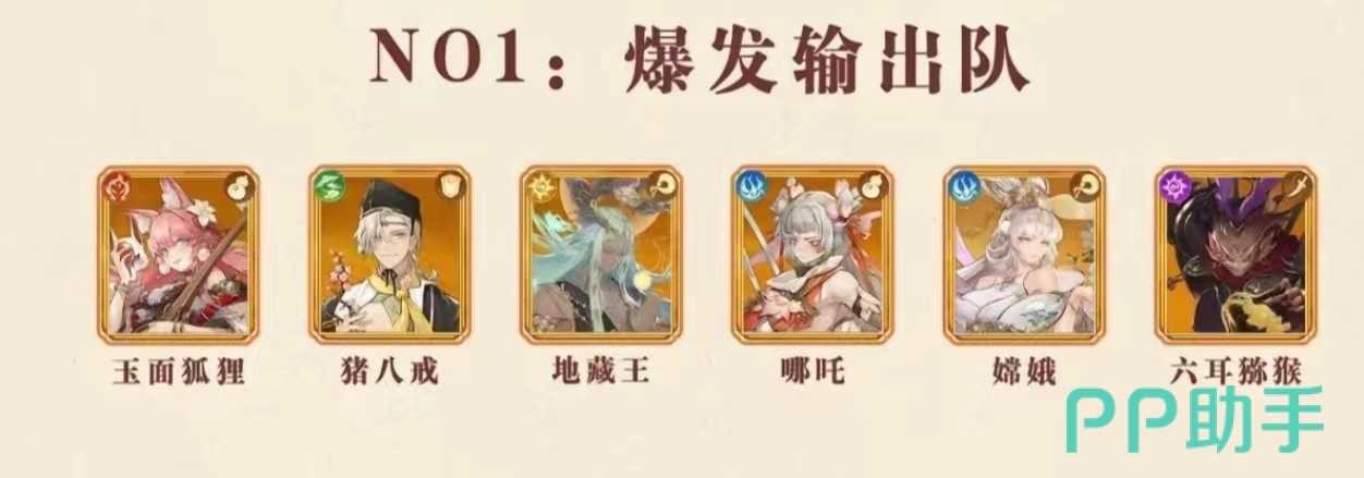 T0:这一阵容由玉面狐狸、猪八戒、哪吒和嫦娥等组成,也叫爆发输出队,具有最强级别的战斗能力,可以短时间给敌人大幅攻击伤害。